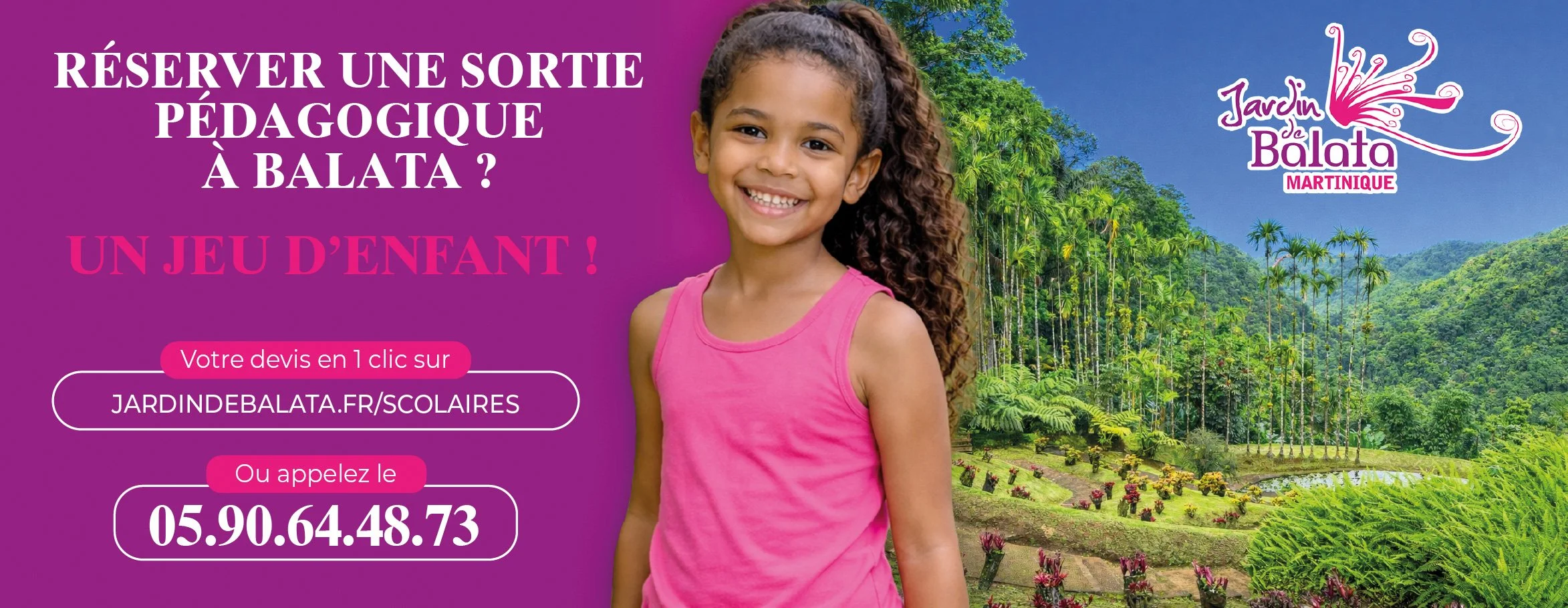 Avec ses centaines d’espèces de toute beauté, ses espaces botaniques dessinés par un maître en la matière, le Jardin de Balata est le lieu idéal pour sensibiliser les enfants aux enjeux de la biodiversité, et éveiller en eux une sensibilité particulière à la nature. Apprendre en s’émerveillant, c’est la promesse du jardin N°1 aux Antilles !